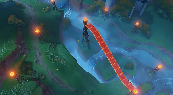 Во время катсцены вам покажут все столбы. Возьмите силу юмказавра для удобства перемещения и притягивайтесь к столбам, нажимая кнопку Е. Чтобы факел зажегся, достаточно подойти к нему поближе. Постарайтесь перемещаться по платформе осторожно, чтобы не вылететь и не нарушить порядок зажжения факелов.