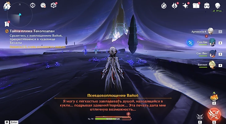 Вы имеете дело с Крио версией Воплощения Вайоб, поэтому лучше применяйте в бою Пиро и/или Электро персонажей. Враг может атаковать по площади и призывать Волков разрыва – не лишней будет помощь хилера.