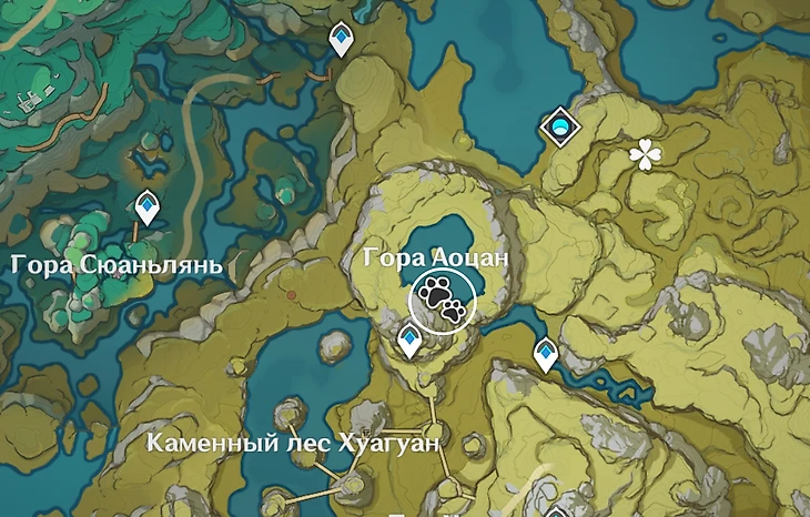 Переместитесь на гору Аоцан. От точки телепортации бегите налево, затем обогните скалы.