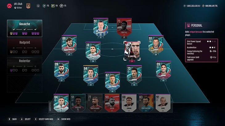 ● Карточки UFL можно прокачивать. У футболистов присутствует различные скиллы, а еще указана точность обеих ног (в FC – только у слабой).