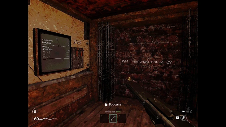 Встретиться с монстрами и аномалиями – лучше, чем застрять на закрытом этаже и понять: топлива на дальнейший спуск нет. Остановка была единственной надеждой на новые ресурсы. Но вместо них стена с абсурдной надписью.