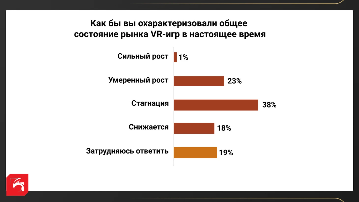 Соответственно, будущее VR-рынка не вызывает должного оптимизма. По результатам последнего опроса Game Developer Collective, 56% респондентов либо не видят никакого развития этой технологии, либо считают, что рынок снижает темпы.