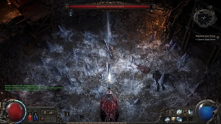 Маск не знает, как использовать флягу с маной. Когда у него закончился основной ресурс, он продолжал бить босса базовой атакой. Это грубая ошибка в сражениях с такими противниками. Она способна привести к смерти персонажа.