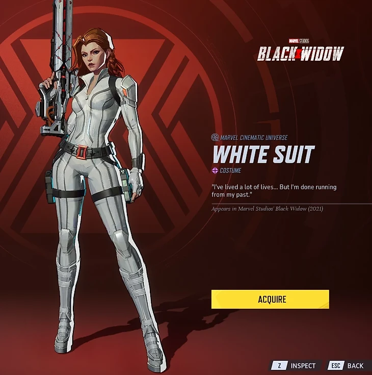 Хоть фильм не произвел большого фурора, но костюм Черной Вдовы запомнился зрителям. В игре он выглядит не менее стильно! Белый образ с рыжими волосами Скарлетт Йоханссон добавляет персонажу изящности и невероятной харизмы.