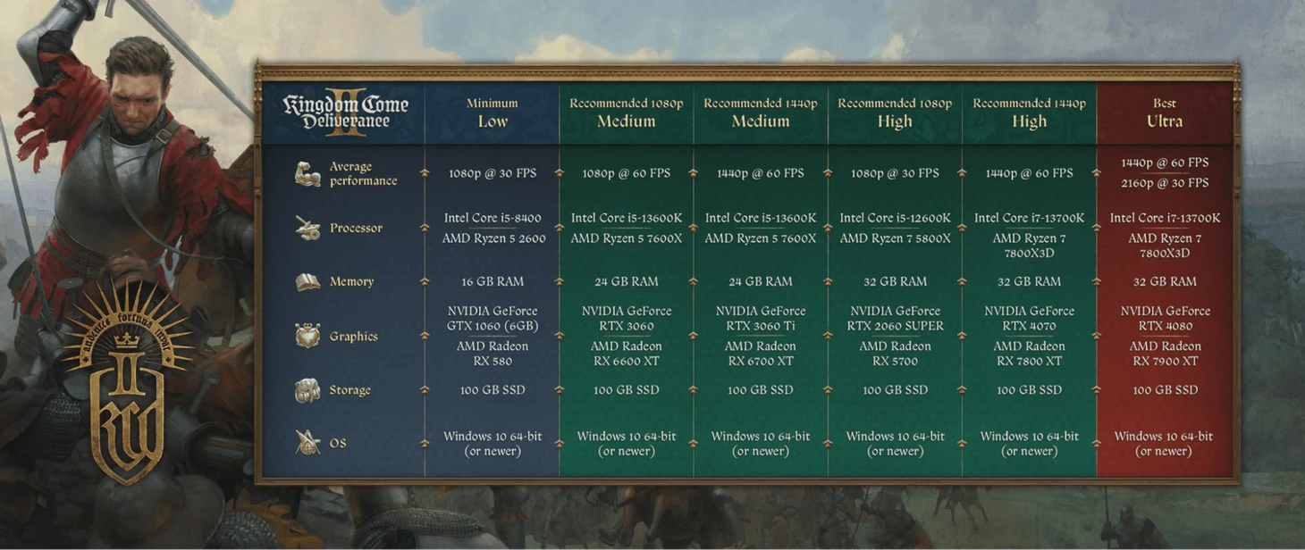 Рекомендуемые требования для 1440p (средние настройки графики, 60 FPS):