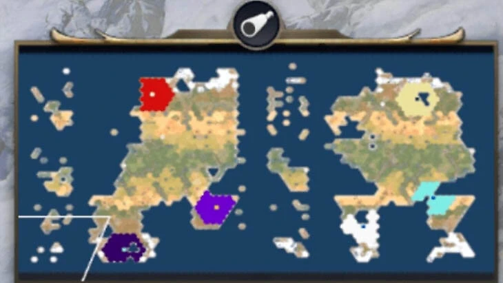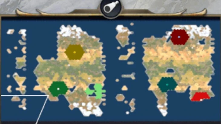 На этой карте игровой мир разделен на два основных материка. Вокруг них разбросано несколько небольших островов, но они играют второстепенную роль. Основные события развернутся на двух крупных массивах суши. Здесь цивилизации тесно взаимодействуют друг с другом, что создает идеальные условия для активной дипломатии.