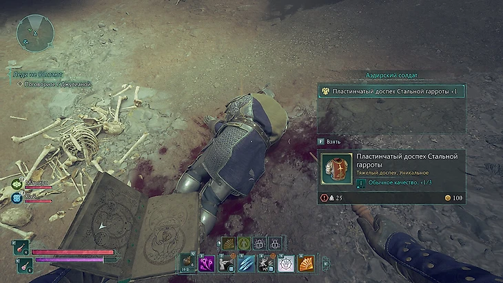 Забрать нагрудник пироманта можно неподалеку: спуститесь по камням на кладбище, распугайте мародеров и пройдите к палатке с закрытым сундуком.