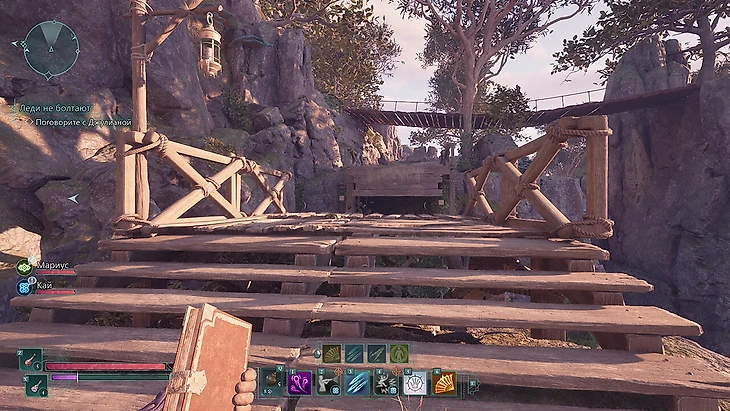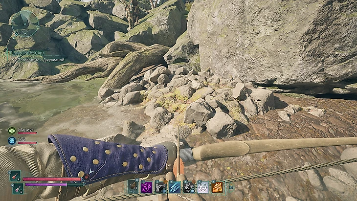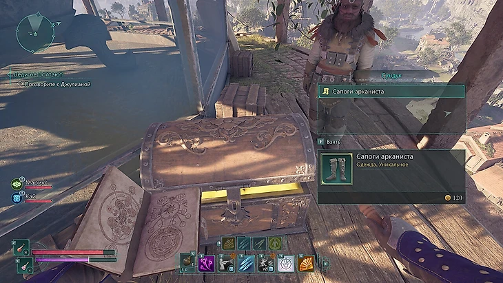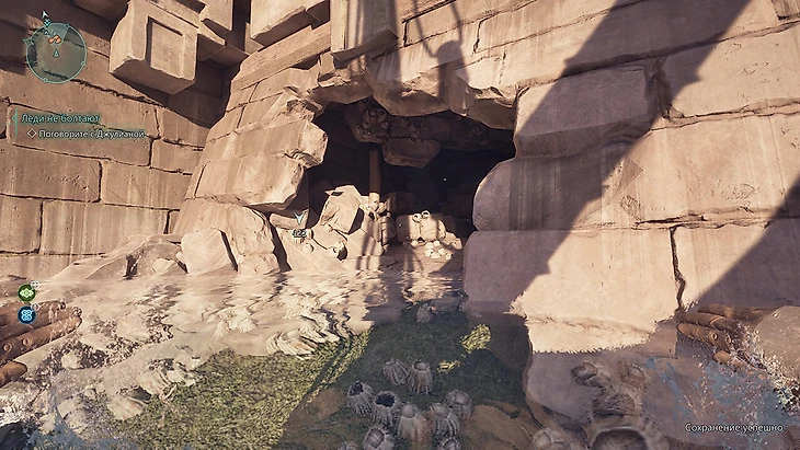 Чтобы не тратить время на спуск, можно сделать прыжок веры в воду, о чем скажут спутники. Можно отправляться за сокровищами.