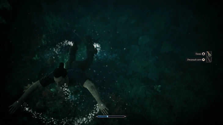 Покиньте лагерь. Справа от единственной тропы будет озеро с водопадом. Ныряйте и отыщите на глубине скелет. Заберите у него ржавый клинок и пиво.
