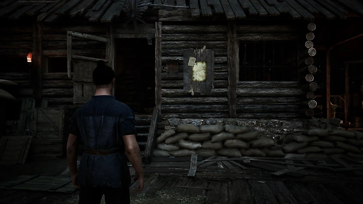 Герой демоверсии – Нирас, второстепенный персонаж из оригинала. Он попадает в колонию, беседует с Диего и получает задание – отыскать ночлег. Сразу после диалога с Диего идите в домик охотника слева. Внутри достаньте из сундука напитки и стрелы, стащите с полок еду. Больше припасов – у костра в лагере.