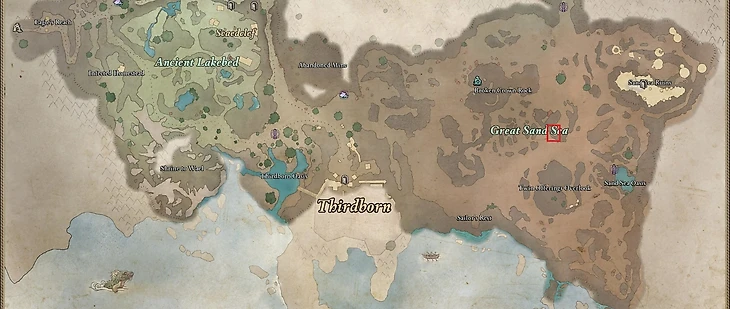 Карта сокровищ «Кольчуга мертвеца» находится в регионе Шаттерскарпе, в одном из его самых загадочных уголков. Чтобы получить карту, вам нужно отправиться в Great Sand Sea, где в южной части карты, прямо под буквой «S» в слове Sea, спрятан небольшой лагерь. Это место будет выглядеть заброшенным, с несколькими палатками и следами былых времен.