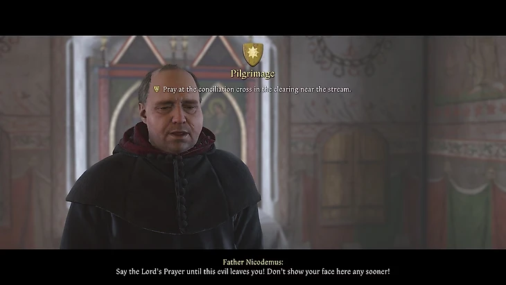 Важно отметить, что это действие можно повторять столько раз, сколько вам нужно, и оно служит для улучшения репутации Индро среди местных жителей. Места для покаяния (примирительный крест ли часовня) будут меняться, а задание можно взять у любого священника.