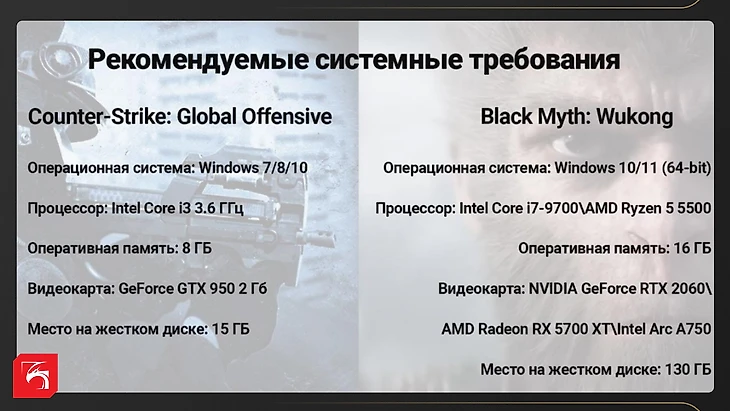 С профессиональным игроком дело обстоит иначе: для него игра – это работа, карьера, победа, успех и так далее. Здесь важна не топовая машина, а надежная. Да и игры, представленные в кибердисциплинах, совсем не «прожорливые». Сравните.