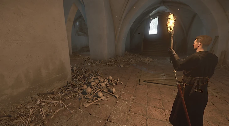 Вам будет предложено отправиться в подвал часовни. Возьмите с собой факел (ну или выпейте зелье, чтобы видеть в темноте) – иначе вы ничего не увидите. Как только окажетесь в зале, вы сразу заметите, что вокруг разбросаны кости. Вам нужно собрать все, которые попадаются вам на глаза.