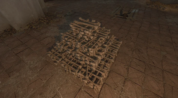 Когда вы убедитесь, что собрали все кости и избавились от всего лишнего на этом этаже, отправляйтесь искать деревянный люк в полу. Взаимодействуйте с ним, чтобы попасть в склеп. Там вас также будут ждать кости, которые нужно собрать.