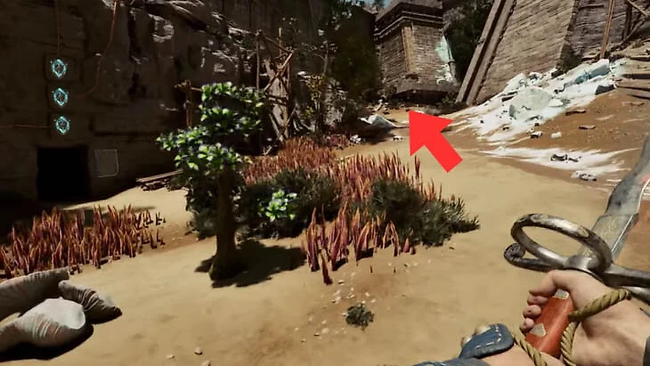 Чтобы найти этот загадочный тайник, вам нужно отправиться в юго-восточном направлении от карты Шаттерскарп, держа путь к области под названием «Зубы Акулы». Тайник расположен в самом юго-восточном углу региона. Не беспокойтесь о поиске входа – дорога к зданиям хорошо заметна и не требует особых усилий для обнаружения.