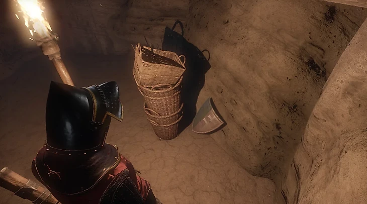Не упустите возможность проверить сарай, расположенный слева от дома, где вы сможете найти аналогичный щит и мешок с провиантом.