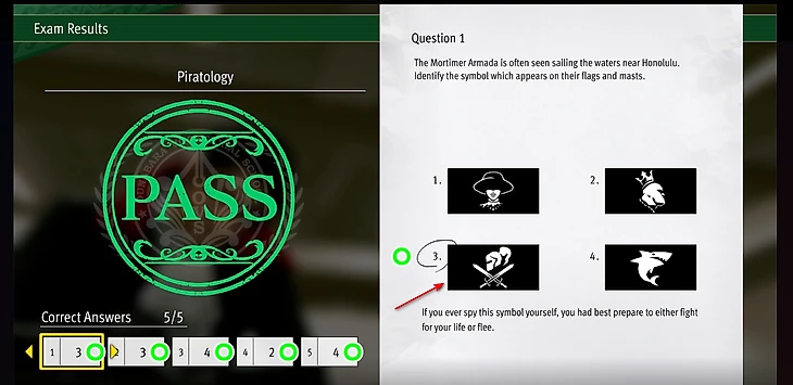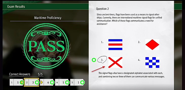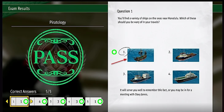 Одна попытка пройти тест стоит 500 долларов, а за успешное прохождение вы получите 1000 единиц репутации. Вопросы для настоящих мореплавателей: