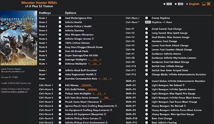 Трейнеры Monster Hunter Wilds +52 трейнера