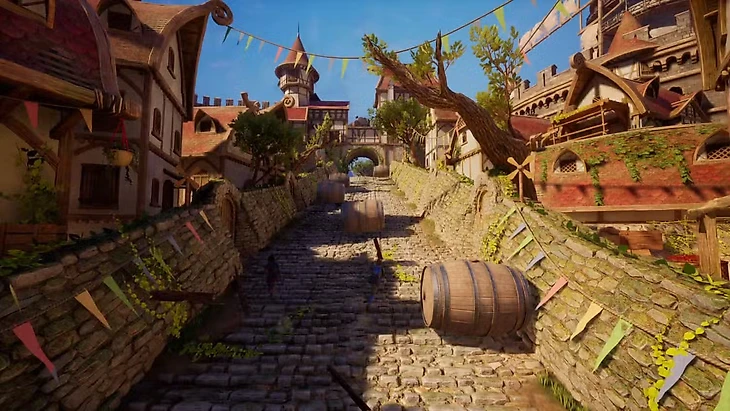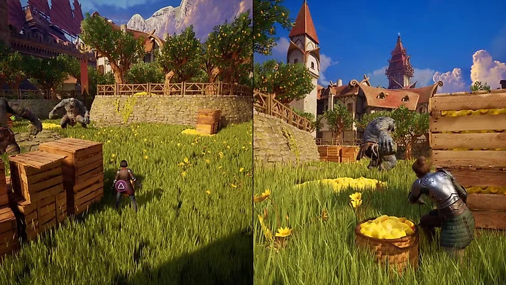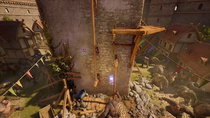 Вскоре вы увидите большой рынок, кишащий ограми. Зои и Мио нужно осторожно перепрыгивать через верхушки флагштоков и крыши зданий. Некоторые из флагштоков находятся в движении, поскольку их носят огры. Двигайтесь осторожно, сохраняя спокойствие. Добравшись до очередной платформы, действуйте сообща с напарником и отодвиньте ящик с лимонами, закрывающий путь.