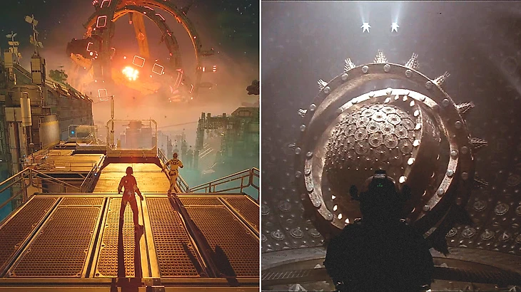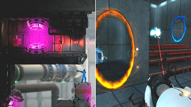 В одном из секторов два портала находятся ровно друг напротив друга, так что при попадании в один из них вы оказываетесь в привычной ловушке из бесконечного падения, ни раз проворачиваемой в дилогии Valve. Рядом с ними же стоит тортик с одинокой свечой. А в побочном «Игровом Шоу» легко разглядеть в ведущем смертельных игр на выбывание роботе черты ГЛаДОС – злодейского суперкомпьютера из обеих частей Portal.
