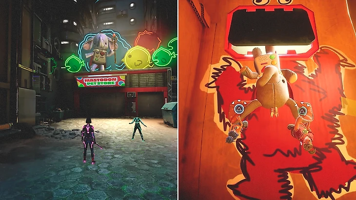 В новом проекте про литераторов в киберпанк-главе за Мио можно встретить вывеску с той самой королевой-слонихой, отрывание лапок и ушек которой нанесло психологическую травму многим первопроходцам It Takes Two. Мы играли за родителей, верящих в целебную силу слез их дочери, чтобы вернуться из кукольных размеров и волшебного мирка в реальную жизнь.
