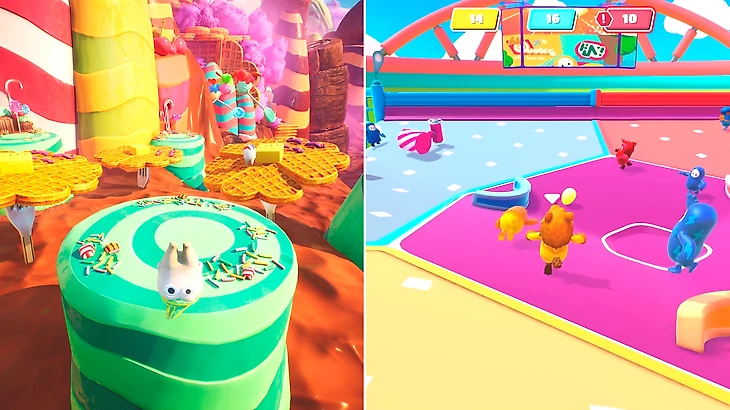 Весь «Торт на день рождения» (исключения: замес со стоматологом в духе Little Nightmares в конце) – это большой привет популярной Fall Guys, миловидной многопользовательской игре.
