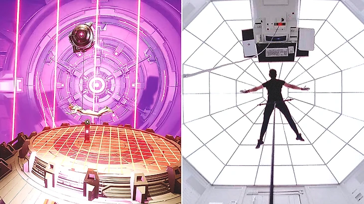 Победив одного из боссов, мы в облике бота спускаем Зоуи через сети лазеров по длинному вертикальному тоннелю. Ввсе, чтобы высвободить заключенную из тюрьмы подсознания Мио. И как только мы зависаем над нужной кнопкой с самого дна тоннеля, игра воспроизводит сцену с копированным данных на тросе из первого фильма «Миссия невыполнима». Как и Итан Хант, точно в таком же шатком горизонтальном положении висит и Зоуи.