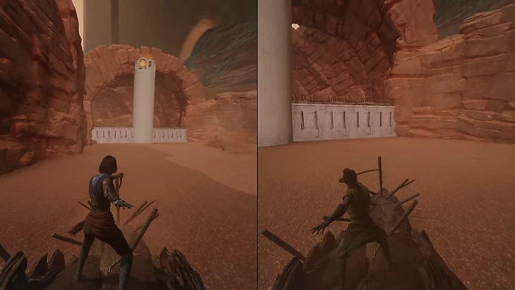 Задача: нужно сбежать из песчаных часов, игроки взаимодействуют друг с другом, чтобы отвлечь песчаных змеев, используя башенные устройства.