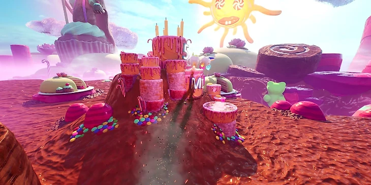 Где находится: седьмая часть Treasure Temple (Храм сокровищ) пятой основной главы Rise of the Dragon Realm. В начале основной миссии предстоит двигаться по тропинке с розовыми кристаллами. Сверните налево от основного пути, увидите плавающего мармеладного мишку, открывающего вход в задание.