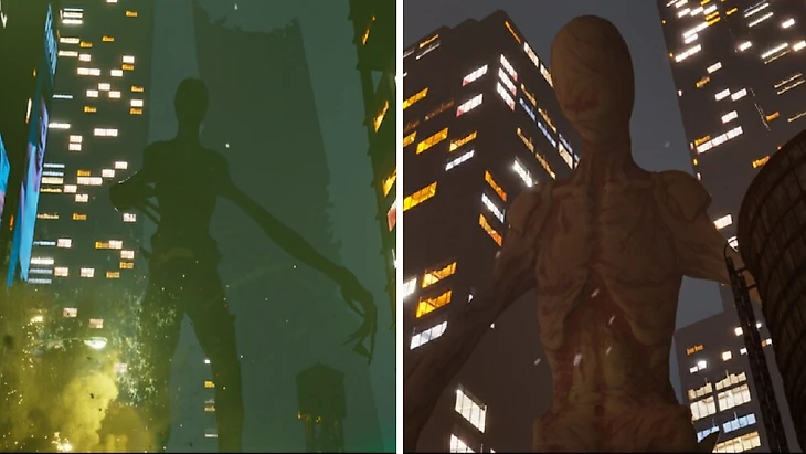 Метатели появляются в городе на любом уровне сложности. Громилы вырывают из земли кусок бетона и бросают в сторону фотографов. Одно попадание – и вас размазывает по асфальту. Уклониться от таких атак трудно, но медлительность монстров играет на руку.
