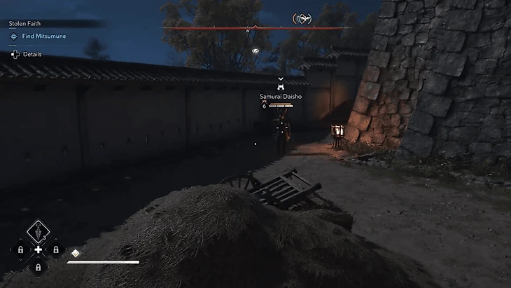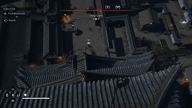 Когда вы окажетесь внутри замка, вашей первой задачей будет устранить трех самураев-дайсе. В режиме наблюдения противники обозначаются белыми точками.