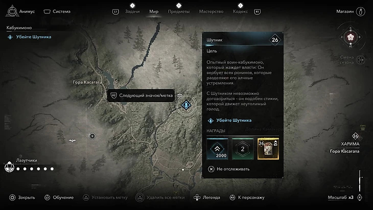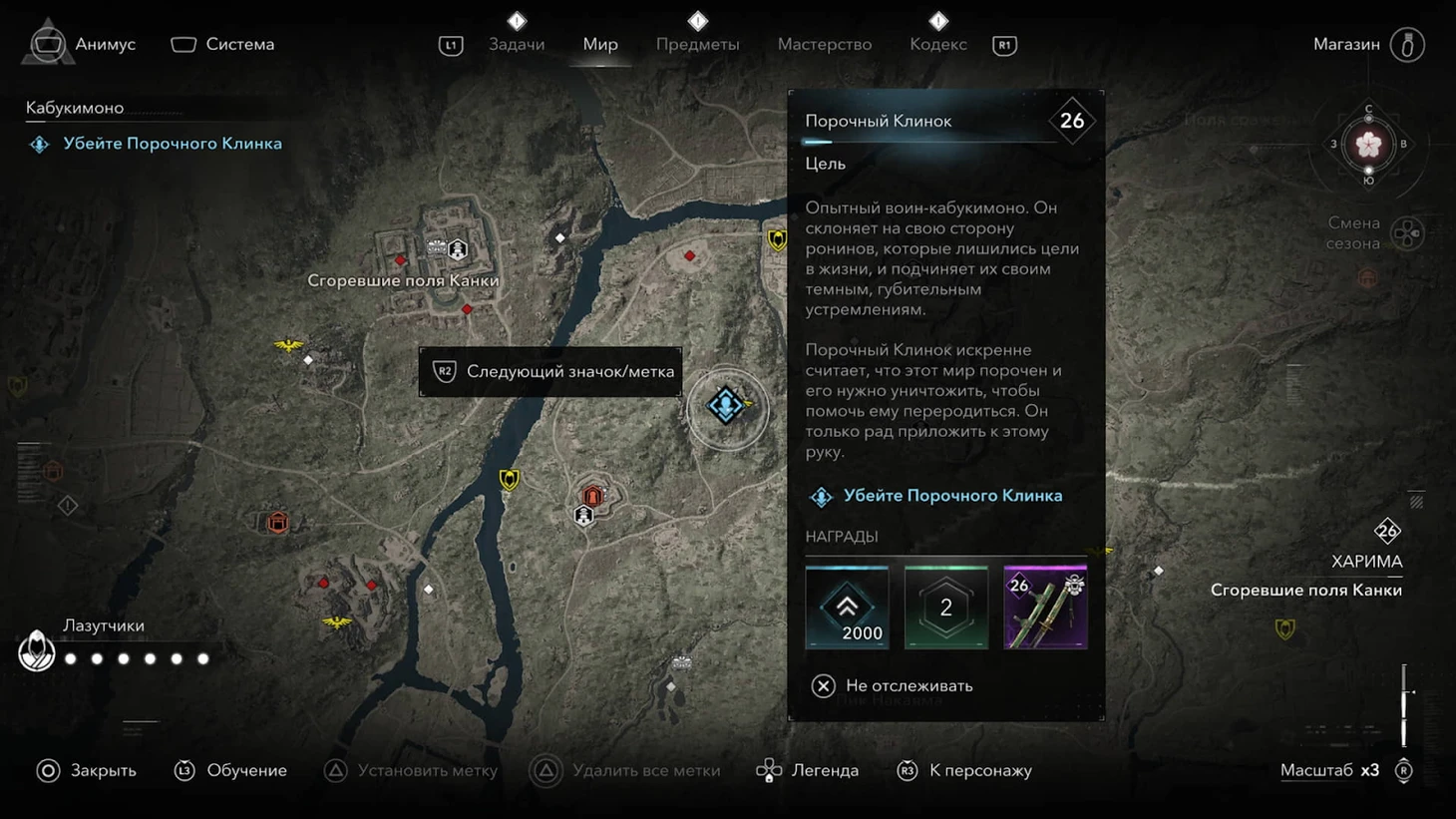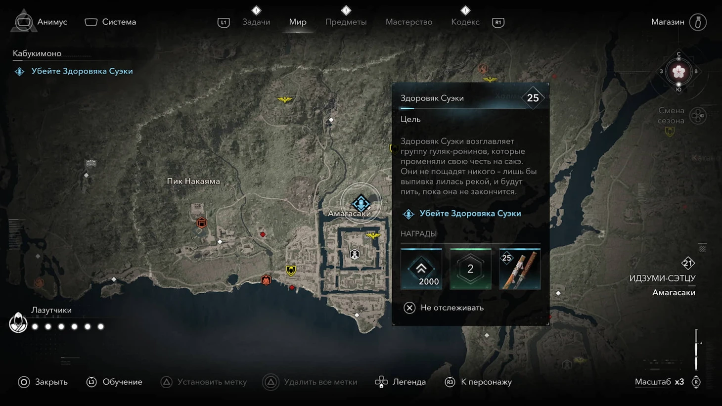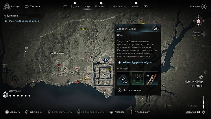 «Кабукимоно» в Assassin s Creed: Shadows – это дополнительный квест, выполнение которого принесет опыт, очки мастерства, гравировку, оружие для Наоэ и Ясукэ. Ваша цель заключается в устранении 8 ронинов, которые терроризируют жителей Японии. Есть два формата прохождения квеста, которые отличаются финальной стадией. Сперва вам надо уничтожить пять целей, выследив их и убив. Потом вы можете продолжить персональную охоту на 3 ронинов или собрать их в одном месте и убить.