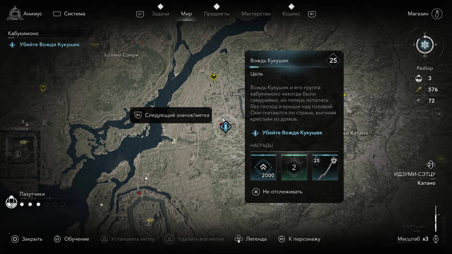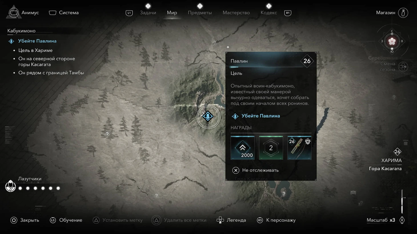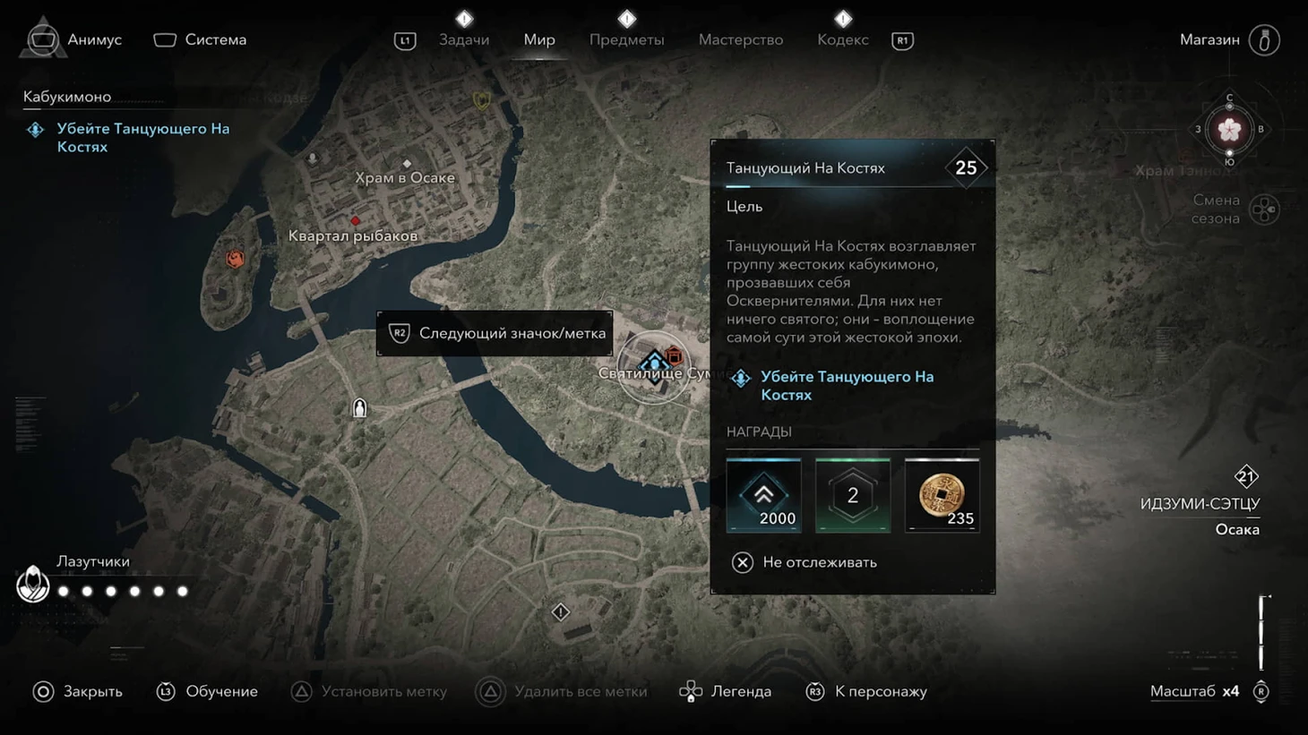 «Кабукимоно» в Assassin s Creed: Shadows – это дополнительный квест, выполнение которого принесет опыт, очки мастерства, гравировку, оружие для Наоэ и Ясукэ. Ваша цель заключается в устранении 8 ронинов, которые терроризируют жителей Японии. Есть два формата прохождения квеста, которые отличаются финальной стадией. Сперва вам надо уничтожить пять целей, выследив их и убив. Потом вы можете продолжить персональную охоту на 3 ронинов или собрать их в одном месте и убить.