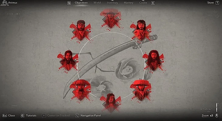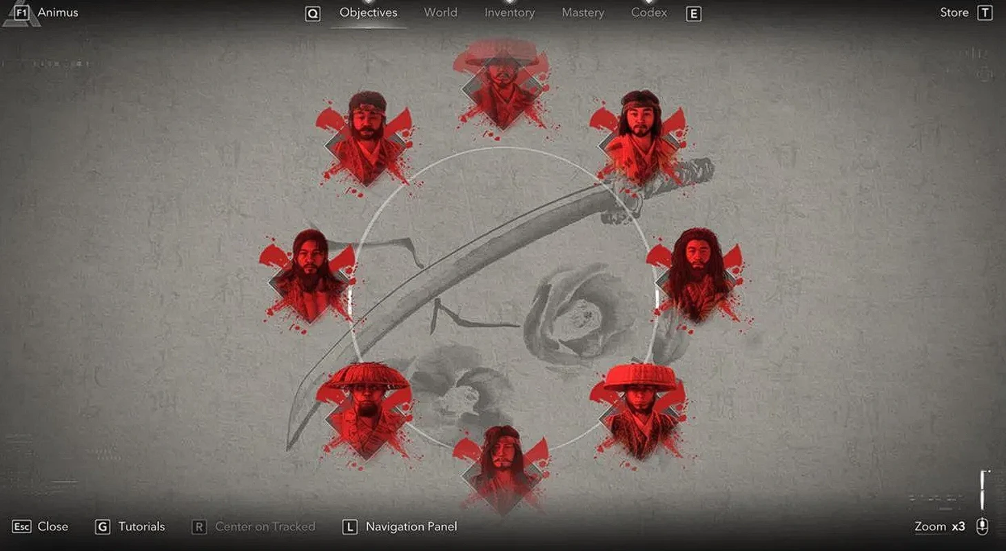 Здесь возможно два продолжения – собрать три цели вместе или уничтожить по одиночке. Первый вариант проще. Вы экономите время. Если бороться с врагами поодиночке, то надо найти не одно, а три места, а также сражаться с большим количеством противников. Каждого лидера охраняет по 4 ронина.
