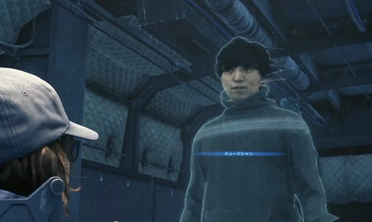 Выживальщик Музыкант из Death Stranding – персонаж, обитающий в Восточном регионе, к юго-западу от Распределителя, недалеко от водопада, впадающего в большое озеро. Его убежище расположено в холмах выше этого места. Чтобы установить с ним связь, необходимо выполнить стандартный заказ и найти утерянный груз. Доступ к личному помещению и гаражу отсутствует.