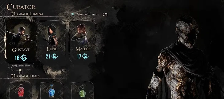 После возвращения в лагерь, найдите Куратора и выберите опцию «Улучшить оружие». Вы можете выбирать члена группы, кому будете улучшать оружие в Clair Obscur Expedition. Для повышения уровня надо использовать катализаторы хрома. До третьего уровня используются обычные катализаторы, а с 3 до 9 – блестящие катализаторы хрома. Материалы для совершенствования экипировки можно найти в ходе исследования мира и сражений с противниками.