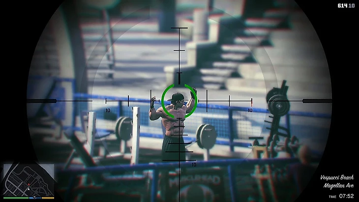 Первым присяжным, которого необходимо устранить, является бодибилдер на пляже Веспуччи. Он находится на открытом пространстве, демонстрируя свои мускулы, что делает его легкой целью. После начала миссии направляйтесь к пляжу Веспуччи. Присяжный будет находиться на пляже, выполняя упражнения.