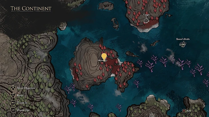 Шестой жестраль можно найти на Красном острове, расположенном юго-западнее от Визажей. Чтобы попасть туда, нужно будет плавать, так что позаботьтесь о навыке плавания у Эскье. Оказавшись на острове, направляйтесь к статуям лиц, которые будут служить ориентирами. Это довольно заметная часть ландшафта, так что не ошибетесь.
