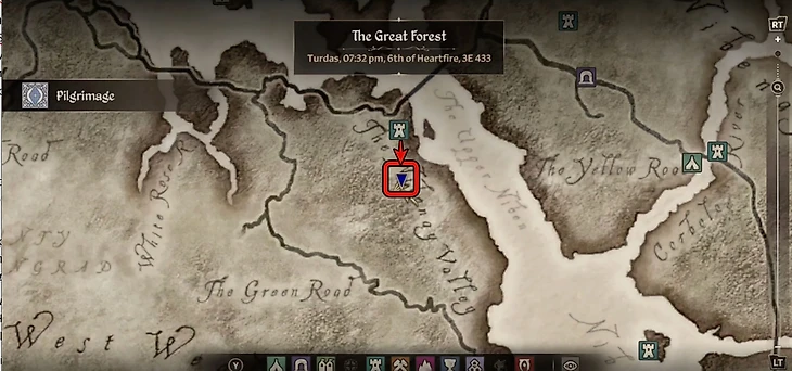 Расположено на пути между Анвилем и Квэтчем. Отправляйтесь на запад от Квэтча по большой дороге, поворачивающей на север. Прямо на небольшом выступе карты расположена небольшая группа деревьев, среди которой скрывается аркейское святилище. Будьте внимательны: в окрестностях водится немало хищников.