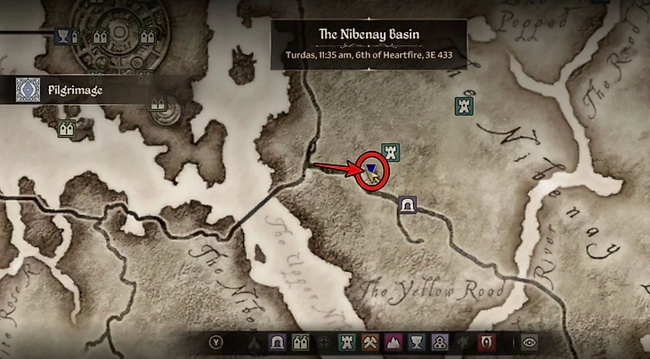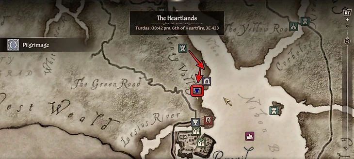 От Имперского города двигайтесь на юг вдоль реки Верхний Нибен. Через некоторое время вы дойдете до форта Алисия, расположенного рядом с мостом. Далее продолжайте движение на юг, и вскоре вы попадете в небольшую долину, где и скрыто святилище.