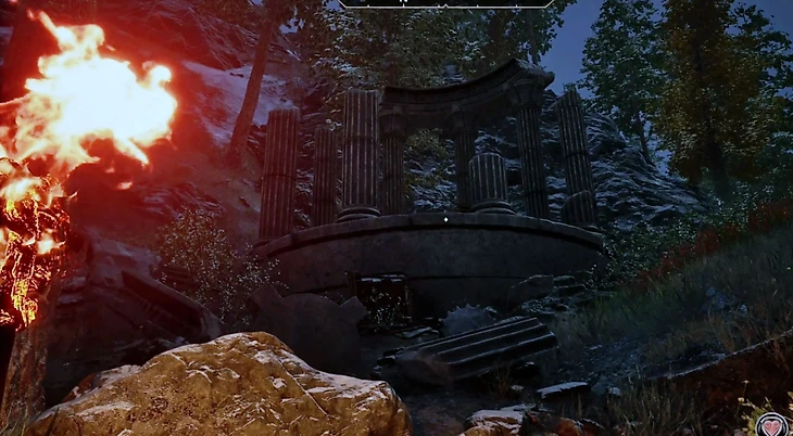 Быстро телепортируйтесь к конюшне Grateful Pass Stables, расположенной на западе от Сканграда. Само святилище находится буквально неподалеку, справа от конюшен.