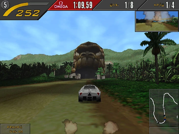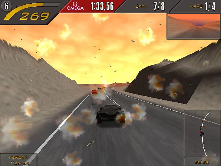 В-четвёртых, улучшили дизайн трасс. Ну как, улучшили... Он стал структурно насыщеннее, дорога перестала быть бобслейным жёлобом, за пределы которого вы не можете выйти, есть точки торможения, которые НУЖНО запоминать, но визуально он очень неровен – некоторые трассы разработчикам удались, некоторые – откровенно нет. Как будто две разные внутренние команды работали. Цветовая гамма здесь приглушенная, полигонов в трассы ввалили порядком (так много, что почти не осталось на улучшение моделей машин или прикручивание к ним модели повреждений), но даже улучшенный движок картинку в целом не вытягивает. И это ещё ПК-версия SE с поддержкой 3Dfx смотрится среднепаршиво, на PS1 стандартная версия выглядит ещё хуже.