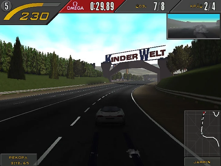 Ну и плюс, та же проблема, что была и у The Need for Speed – игры слишком мало, даже в SE. Пройти турнир, из любопытства покататься на каждой из 12 машинок (+ 2 бонусных) по каждой из 7 трасс, порубаться в самопальный мультиплеер, поизучать энциклопедию, посмотреть ролики и, в общем-то, всё. Другое дело, что в The Need for Speed ты вспоминал об этом сильно позже, чем здесь – потому что ездить было интересно, ИИ соперников был сложнее, а местный турнир нельзя было выиграть левой задней. Здесь же, после затухания эффекта новизны, скука накатывает буквально на второй час (если режим «Аркада» вас ещё раньше не отторгнет).