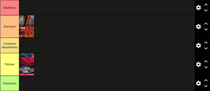 Ну и в конце, маленькое объявление. Вы же любите всякие тир-листы, да? Так вот, после каждой рецензии на очередной Need for Speed, я буду распределять игры этой серии по тир-листу. Выглядеть он будет вот так: