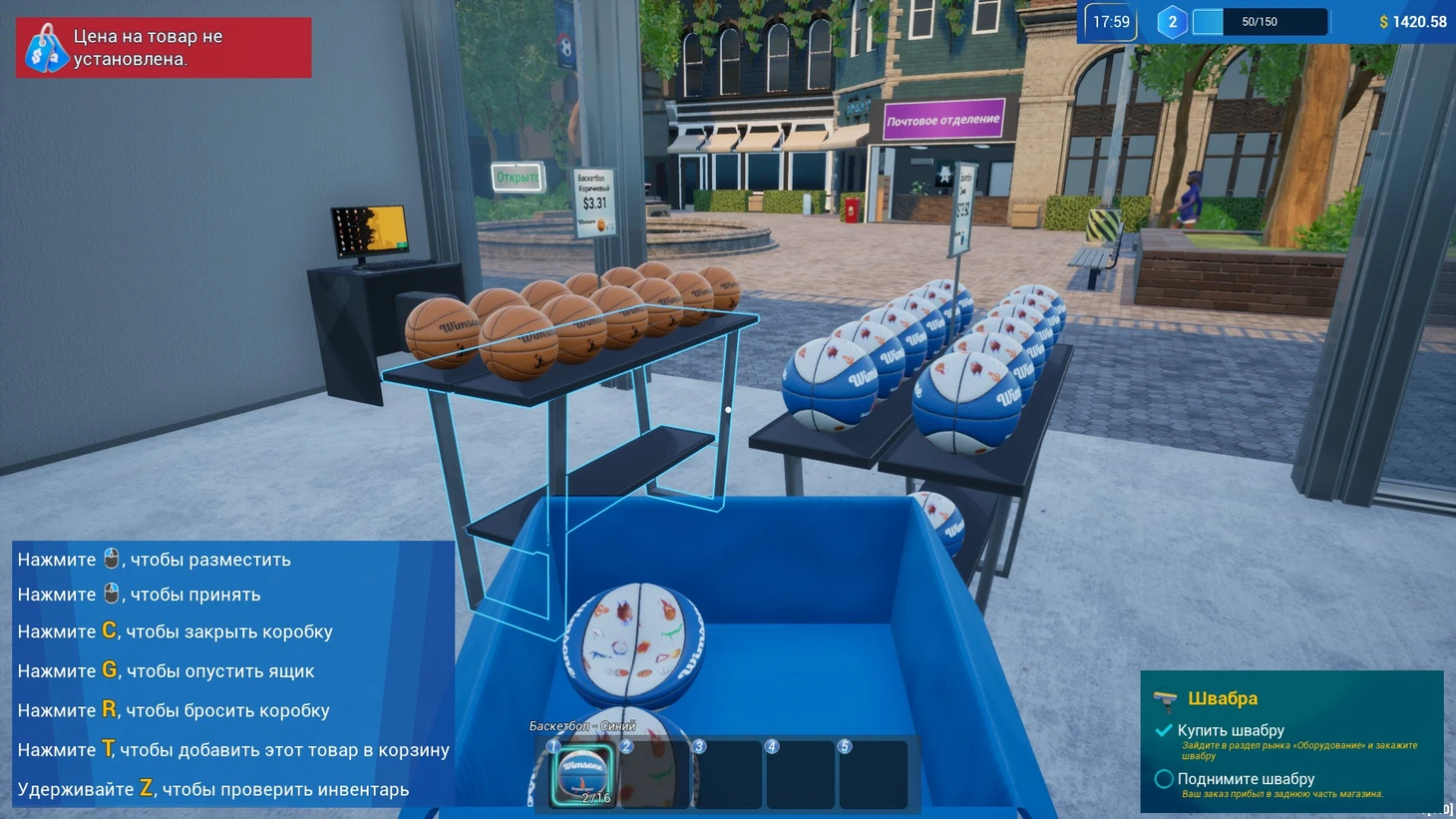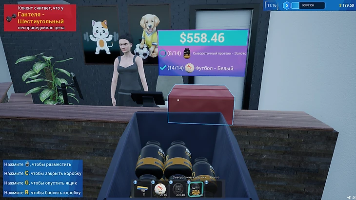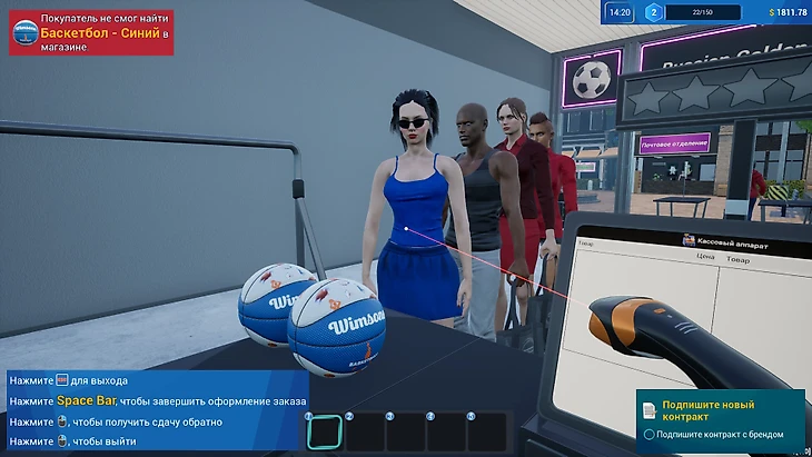 Я сел за кассу и прочувствовал вайб спортивного магазина. Клиенты потихоньку образовали очередь. Возникла первая сложность – мини-игра с продажами. Отсчитывать наличные первое время было очень непривычно, но симулятор помогал и не давал разорить магазин щедрыми сдачами. С кредитной картой проще, достаточно ввести сумму на электронном аппарате.
