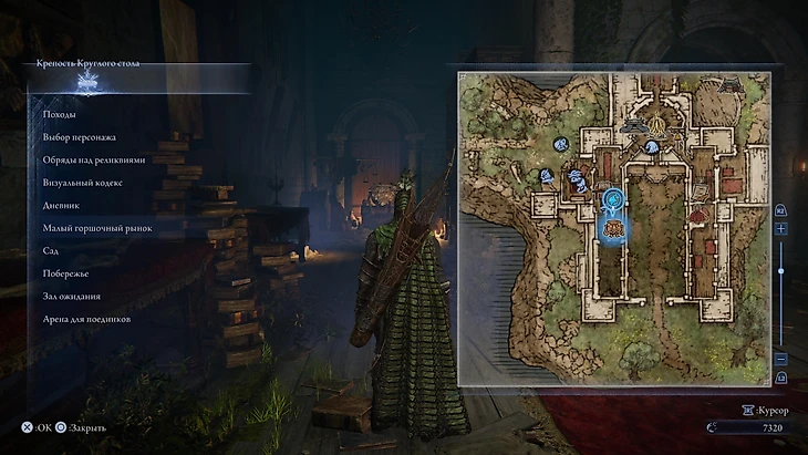 Затем поговорите с Жрицей, которая стоит в главном зале Крепости Круглого Стола.