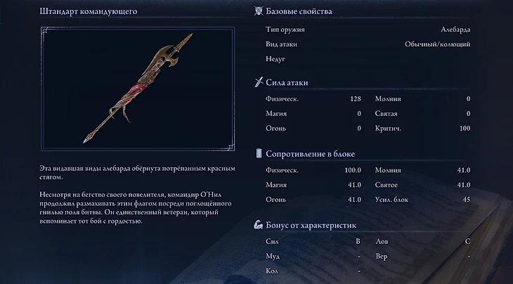 Штандарт командующего (эпическая алебарда): алебарда без уникального эффекта, но обладающая высоким базовым уроном. Отлично сочетается с боевыми навыками Стража, которые ориентированы на эффективное использование этого вида оружия