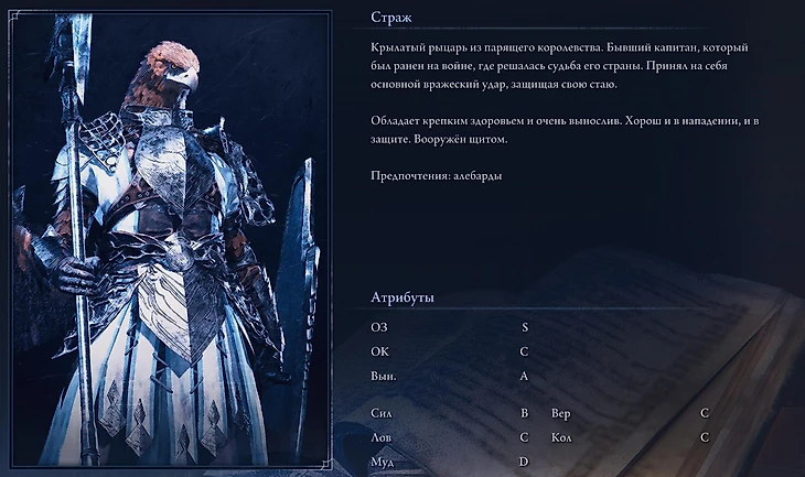 Лучшие характеристики: Мудрость (A), Ловкость (B)