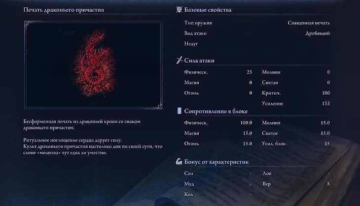 Печать драконьего причастия (эпическая священная печать): максимальный бонус от веры, плюс усиление драконьих заклинаний.